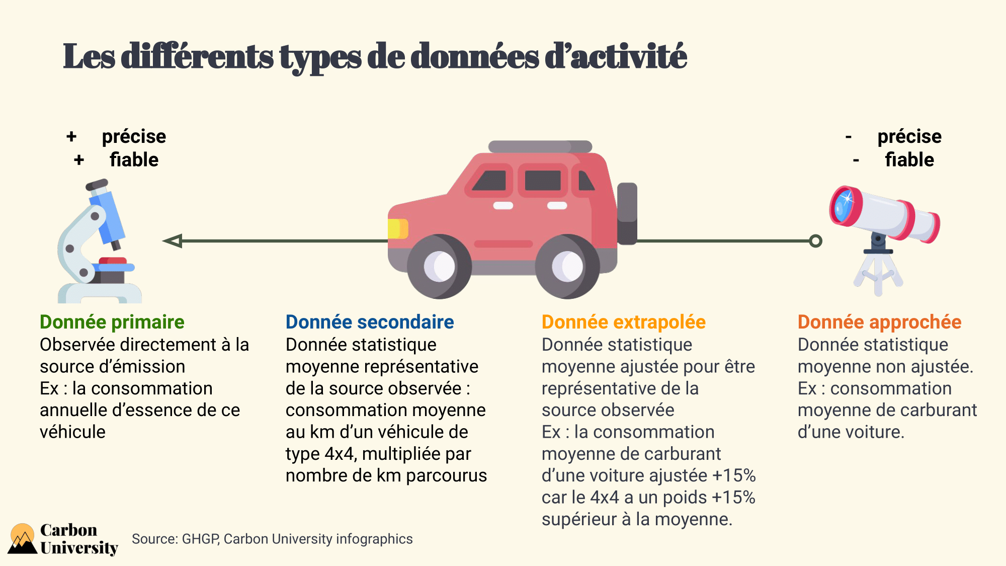Lorsque plusieurs types de données d'activité sont disponible, la plus précise et la plus fiable doit être privilégiée :